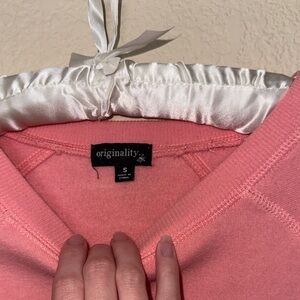 Stylish pink sweatshirt featuring 'Howdy' in shimmering letters. Perfect for casual wear. Barely worn. Smoke free home.