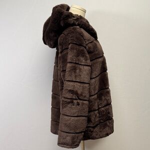Quince Hooded Faux Fur Coffee Bean Brown Jacket