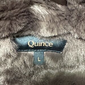 Beautiful faux mink fur jacket by Quince. Ultra soft and plush to the touch. Features side pockets and snap front closure. It measures 22 inches from armpit to armpit and the length is 25 inches.