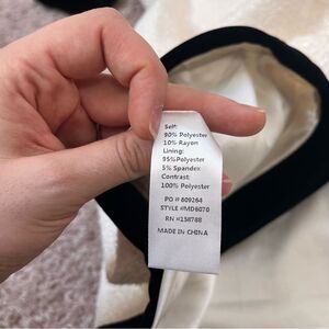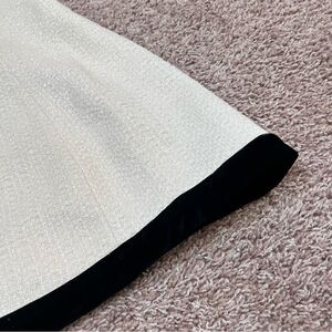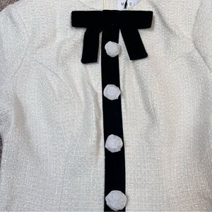 MABLE Tweed Mini Dress with Rhinestone Buttons. Size small. Cream shimmery tweed with a black velvet or velour trim, including a beautiful bow at the neckline. Buttons on front are like rhinestone gem bursts, the dress does come with a spare in case you need it! Zipper back. This is fresh out of a poly bag so I could provide measurements - it’s never been worn! Made of polyester, rayon, and spandex. The dress is lined. Some structure to sleeves and skirt for a cute and classic look when worn. This gives major luxury vibes, looks like Chanel!