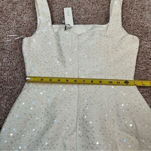 MABLE Tweed Sequin Mini Dress. Size small. New with tags boutique piece! Rhinestone trim. Gorgeous gem buttons, comes with an extra if needed. Such a stunning dress for a bachelorette party, a wedding reception, and a rehearsal dinner if you’re a bride! Lined. Made of polyester and spandex. Dry clean only.