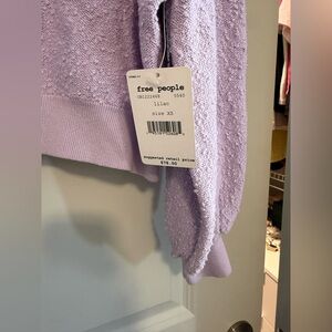 Lilac/lavender color, soft textured fabric, can be worn off shoulder, loose fit