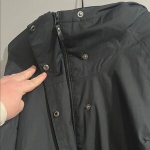 Elevate your wardrobe with this elegant black utility jacket, designed for both style and functionality. Perfect for versatile wear. Size medium, 53 cm pit to pit, 73 cm length