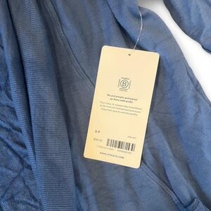Elegant blue cardigan by Athleta. Soft fabric with open front design. Ideal for layering.