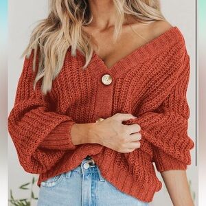 Chunky Knit Open Front Sweater Long Sleeve Button Loose Short Cardigan 8098