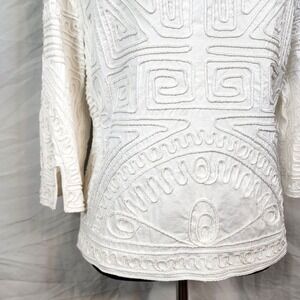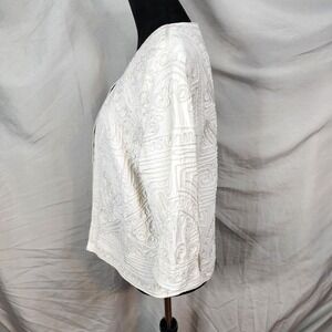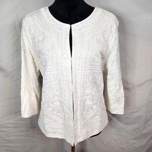 JONI B Size Large White Soutache Embroidered Collarless Jacket Blazer Old Money