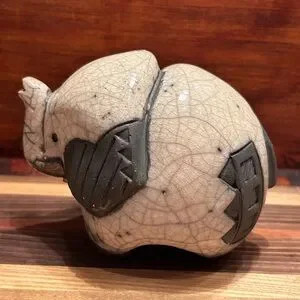 This exquisite handcrafted ceramic elephant sculpture adds a touch of elegance to any space. Featuring a striking black and cream design, it's perfect for art lovers and collectors alike.