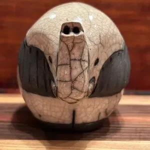 Gerhard De Beer Crazy Clay Elephant Raku Pottery Figurine 4" x 5.5".