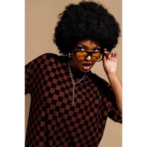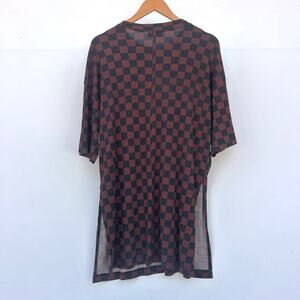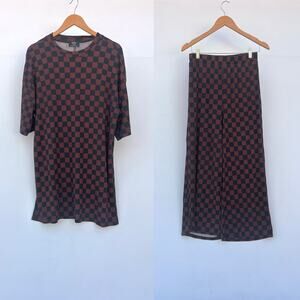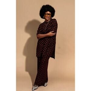 Cult-favorite Dressed in LALA Lex playsuit set in a rich mocha brown and black checkered ribbed knit. This matching set features an oversized tee paired with flowy wide leg pants for a relaxed yet statement-making silhouette.