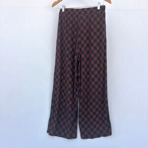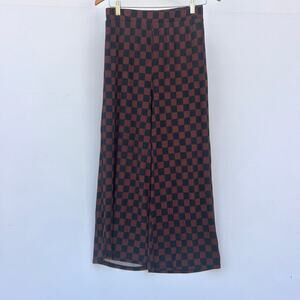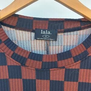 Dressed In LALA Lex Ribbed Playsuit Mocha Brown Black Checkered Set Pants Medium