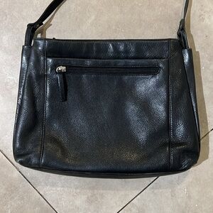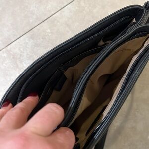 DEREK ALEXANDER Black Leather Purse with Double Zipper and lots of compartments