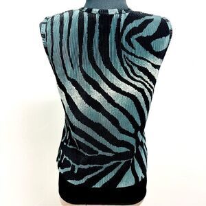 NWOT vintage 90’s abstract tank by Plisse teal black swirl print sz M pleated