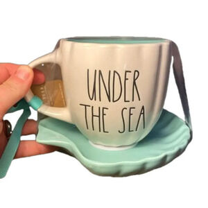 Rae Dunn Ariel & Flounder ceramic mug & shell base. Under the Sea!