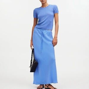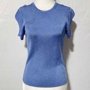 New Madewell Micro Rib Fitted Short Sleeve Sweater Tee NQ337 Celeste Blue XS