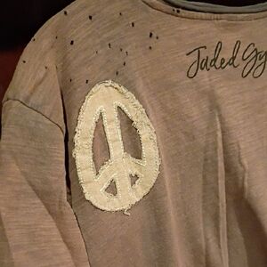 Embrace a laid-back vibe with this brown tee featuring a peace sign graphic. Perfect for casual wear. Such a similar style to MP.