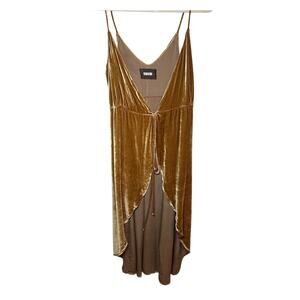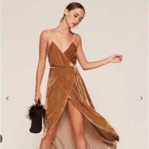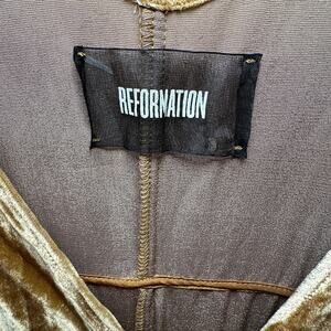 Reformation Anoush Yellow Gold Crushed Velvet Tie Front Dress – Size S