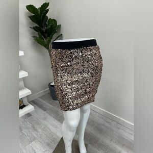 Elegant black and gold sequin skirt. Perfect for evening wear. Comfortable fit.