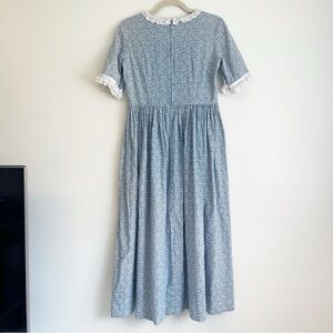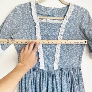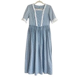 VINTAGE prairie dress cottage blue floral lace long maxi small 4 square neck S