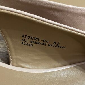 Elegant faux leather flats with a pointed toe and slip-on ankle straps Black and cream color scheme. Perfect for versatile styling. Size 8.5