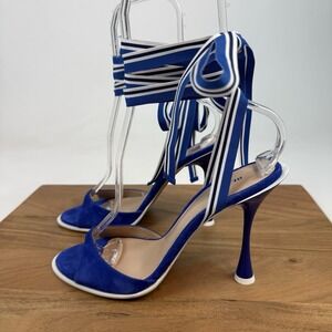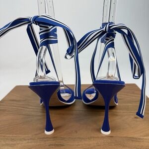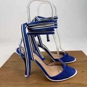 New NWOB Womens Betzabe Norma Suede Blue Open Toe Pumps Heels Size 39.5