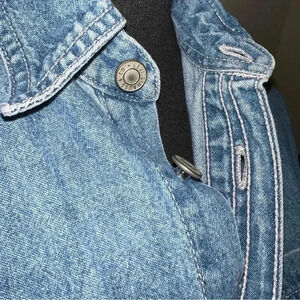 Lev Unisex Kids Vintage Denim Button Down, Signature Rivet Buttons, Shirt Blouse Size 12-14 Medium in EXCELLENT CONDITION!! No holes or stains.