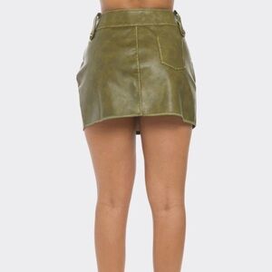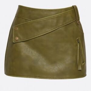 Command attention with the Faux Leather Strap Mini Skirt, a bold fusion of edgy detail and sleek design. Crafted from high-shine PU leather, this mini skirt features striking cross-strap accents and a belt keyhole detail that adds a rebellious twist. Functional front zipper pockets and a small back pocket bring both style and practicality. The structured silhouette is designed to sit close to the body, creating a confident, modern fit. With its subtle stretch and standout finishes, this skirt is perfect for nightlife, concerts, or fashion-forward streetwear.