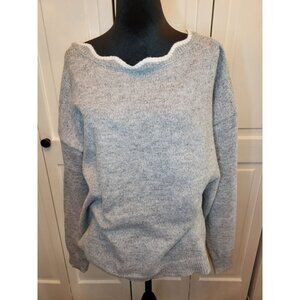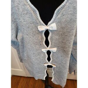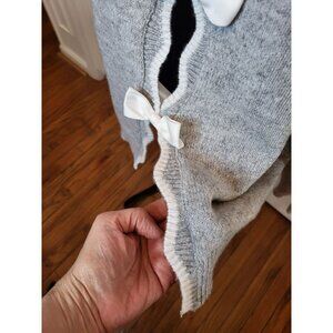 Gray/White Bow Sweater Scalloped Hem 4XL Coquette Feminine Preppy Party Cute