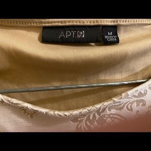 This is a tan & white sleeveless APT. 9 top. No stains, rips or tears. Stretchy and comfortable.