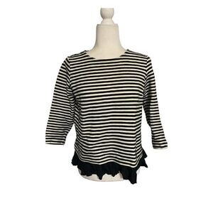 vineyard vines womens black white striped long sleeve sweater top small.