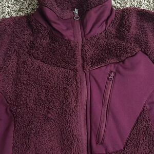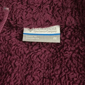 This is a beautiful Columbia full zip fleece jacket in a size small. It is a wine shade between pink and purple. Great for all seasons depending where you are from. Has a zip pocket on the left chest. Is a wonderful soft cozy jacket.