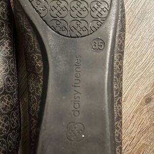 Daisy Fuentes, Sz 6.5 Brown Flats with Gold Medallions. Good like a wide. Gently loved, very good condition
