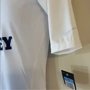 White Nike Pro shirt with Dri-FIT technology. Compression fit for performance.