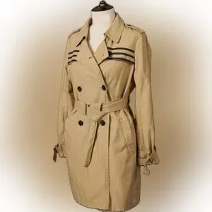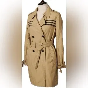 Jean Paul Gaultier x Target Women’s Trench Coat. Beige with black stripes. Double breasted with belt. 100% cotton. Size M.