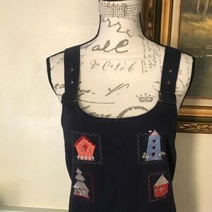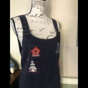 Gorgeous Women’s Denim Soft Birdhouse appliqué Dress with Front pockets and adjustable straps. Excellent condition.