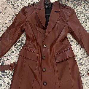 Elegant brown Sheepskin leather trench coat