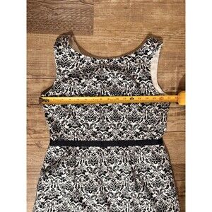 NWT Ann Taylor LOFT black and white sleeveless dress in size 4. It features a floral pattern, round neckline, and zip closure. The dress is knee-length and lined, making it suitable for various occasions such as travel, parties, work, or business meetings. Made from a blend of spandex and cotton, this A-Line and sheath dress is perfect for all seasons, adding a colorful touch to any wardrobe.