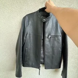 COACH Leather bomber jacket. Worn twice. Basically brand new. Impecable black textured leather. (Bought : $500 Currently: $450.) MY PRICE $179
