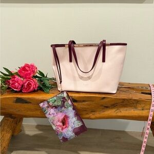Ted Baker London Pink and Burgundy Floral Tote Bag Rose Gold Accents