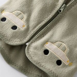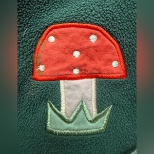 Cozy Hunter green hooded jacket in soft microfleece with cute-as-can-be details for baby's first fall! Adorable forest green fleece with toad 🐸 and mushrooms 🍄 appliqués. Perfect for layering on outdoor adventures.