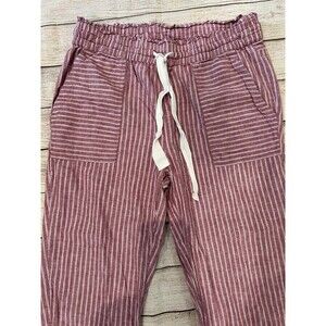 Vince Camuto Red Striped Drawstring Waist Linen Cotton Blend Pants size Small