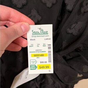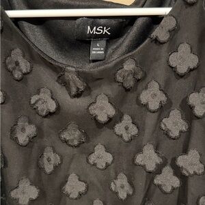 Women’s Large MSK black sheer overlay top with 3D floral appliqués. NWT