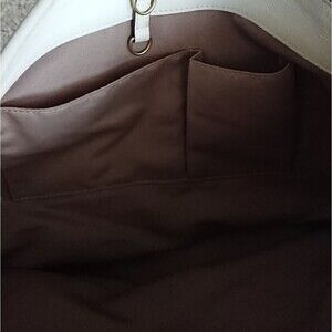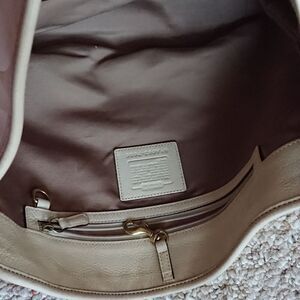 Beautiful cream/beige colored fabric coach purse with leather trim has some light stains see pictures.