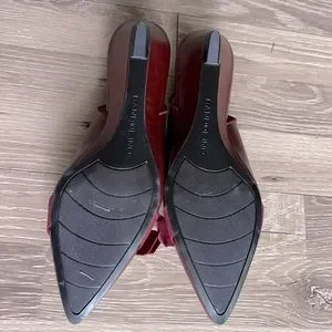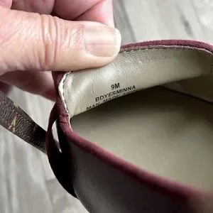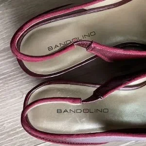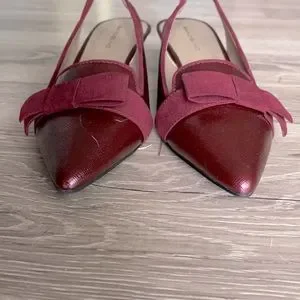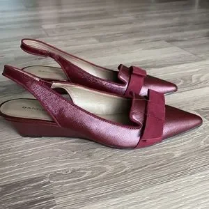 NWOT Bandilino flat wedge slingbacks in maroon. maroon suede bow. elastic strap. Pointed toe. so pretty!!! length 11.5in width 3.5 heel 2.25in