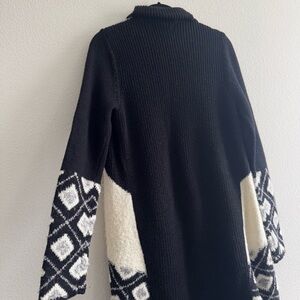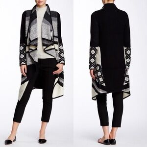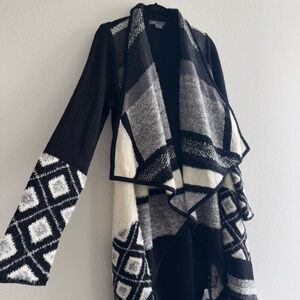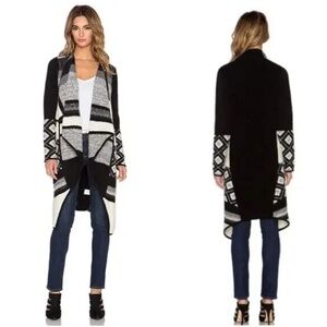Vince Graphic Texture Cardigan Longline Wool Alpaca Blend Knit Mixed Pattern