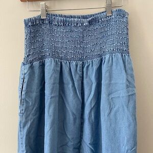 Rd Style Suzanne Chambray Tencil Smocked Waistband Pocket Skirt