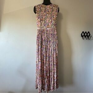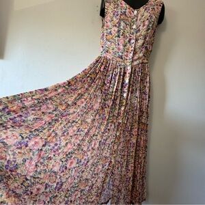 Vintage x Daiquiri Pink Tan Pleated V-Neck Maxi Sundress