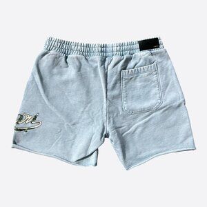 Amiri Faded Blue & White Filigree Logo Shorts