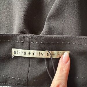New with tags Alice + Olivia tailored ankle pants in classic black. These trousers feature a structured waistband with belt loops, front pleating for a flattering tailored fit, side pockets, and cuffed ankle hems. A polished, versatile style that works seamlessly for office wear or elevated everyday outfits.