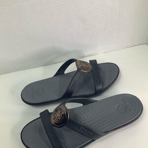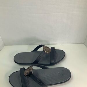 Good condition Crocs Sanrah Metal Block Sandals Women's Size 9 Black Grey Wedge Slide