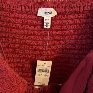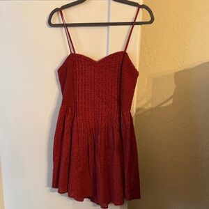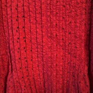Personally bought BNWT, bundle to save more, and offers welcome. Dark red/brick/burnt orange in color. Lined eyelet fabric, Sweetheart neckline, Pintuck deets on front and Smocking on sides and back.
